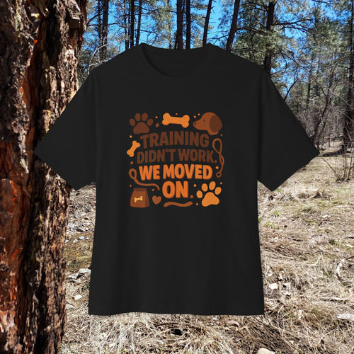 This oversized boxy tee carries a quiet, woodsy charm made for people who spend their weekends on trails, at campfires, or simply lost in the company of a good dog. A warm, sunset hued illustration sits center chest: a loyal dog framed by pines and a glowing campfire, with the bannered phrase “LET THEM BE DOGS.” The silhouette drapes softly from dropped shoulders and a relaxed body, letting you move freely while keeping a laid-back, outdoorsy look. It layers easily over a long-sleeve on chill mornings or stands alone on late-summer evenings. Wear it when you want comfort that reads like a conversation — familiar, steady, and unhurried — with a nod to the small rituals of trail life and shared quiet moments with canine companions.